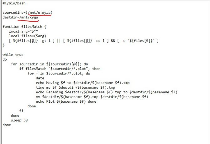 Затем в текстовом редакторе измените адреса дисков и сохраните с расширением .sh вместо .txt